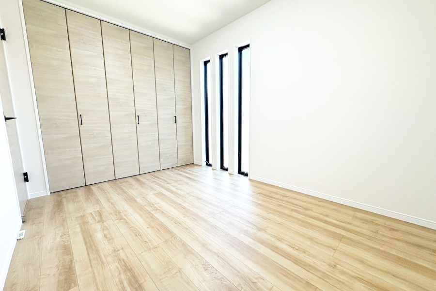 外観は木目調で温かみを…ブラックの外装と組み合わせて仕様することで、スタイリッシュな印象し仕上がりました。室内のフローリングは、メープル柄の明るい色味で柔らかい落ち着ける空間にしました。また室内の窓を多く付け、自然光がたっぷり入るよう設計しました。
