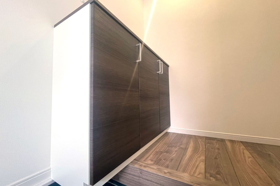 クロスはホワイトをベースに、建具は木目調の少しトーンを落とした色を採用。 見慣れた色だからこその落ち着き、観葉植物等も合わせやすく、落ち着いて過ごせる空間になっております。