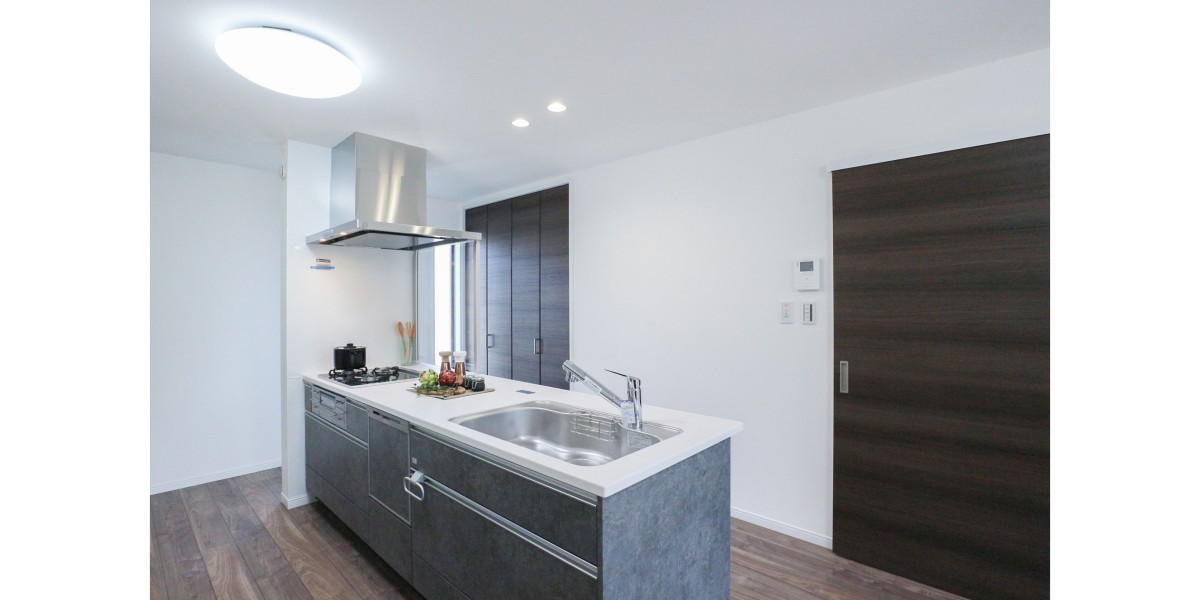 リビングを統一感のある印象に見せ 開放感が出る アイランドキッチンを採用