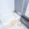 ユニットバスにはモルティオダーク色のパネルを採用し、深みのあるトーンで上質感を演出しました。棚類をブラックで揃えることで全体の統一感を高め、ホテルライクな雰囲気の中に、日常のくつろぎを感じられるデザインとしています。