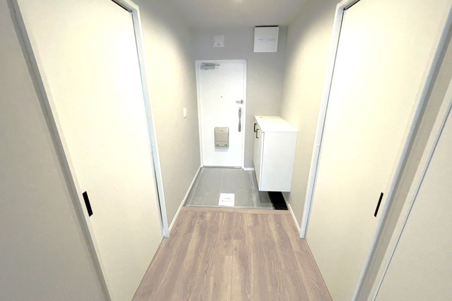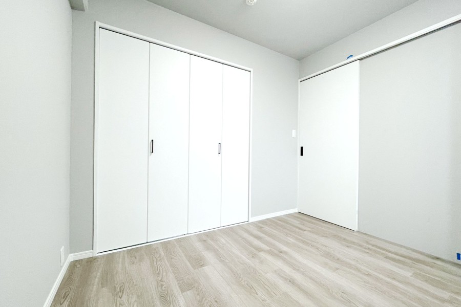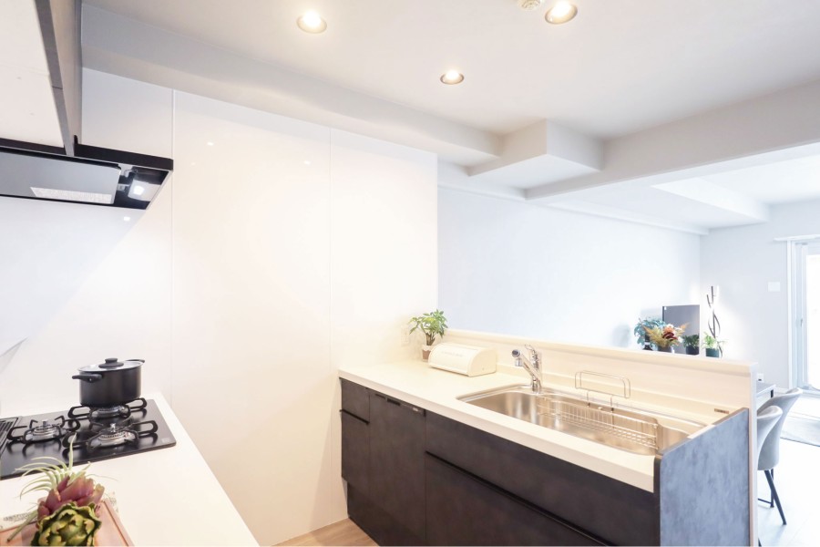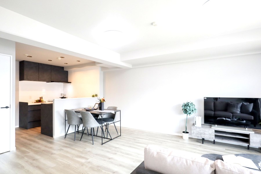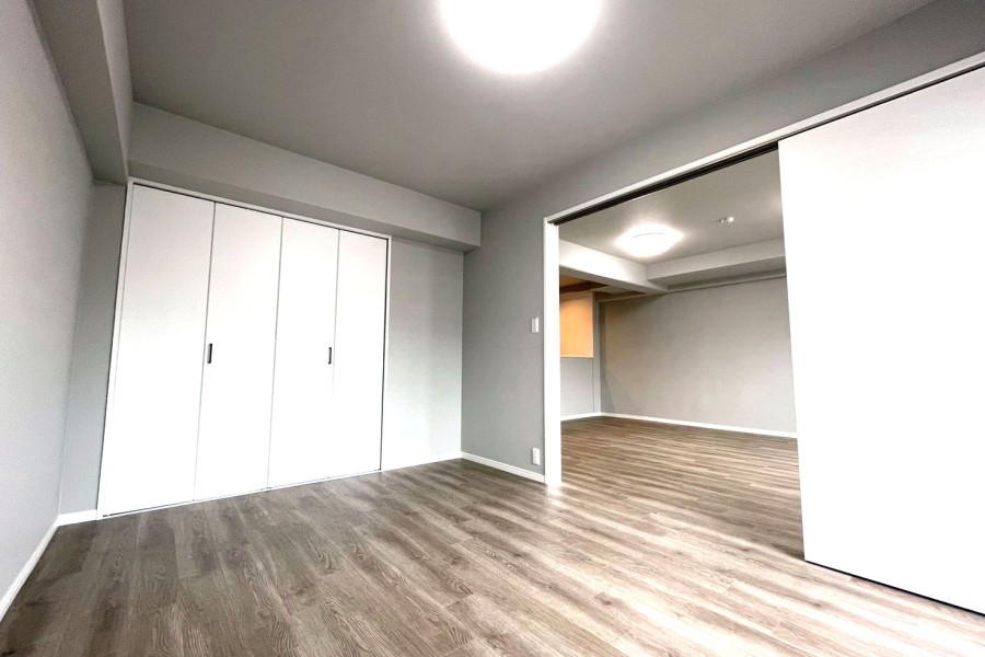 クロスのトーンを落とし、眩しすぎないよう暮らしやすい空間を意識し、色を選定しました。また、LDKと洋室につながるドアを引き戸にし、広々と使えるような空間を設けました。
