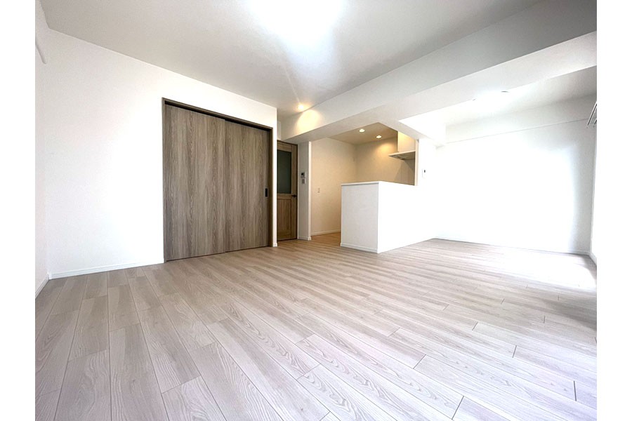 LDKはゆとりの15.6帖、ナチュラルな内装と工夫された間取り、また南向きバルコニーで開放感あふれる明るいリビングに仕上げております。