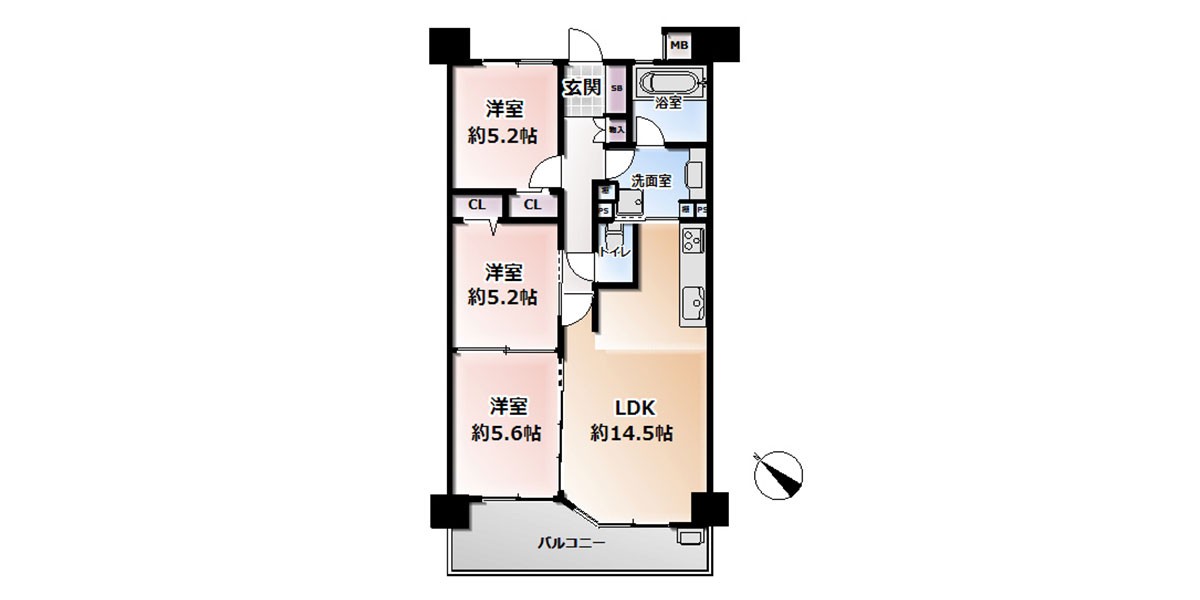 - 専有面積66.79㎡(約20.20坪)壁芯