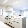 キッチン腰壁にはエコカラットを採用し、空間のアクセントとしてデザイン性と機能性を両立させました。視線が集まりやすいキッチン周りに表情を持たせることで、日常の中に上質を感じられる空間をしています。また、洋室やトイレにはアクセントクロスを取り入れ、暮らしに彩りを添える住まいに仕上げています。