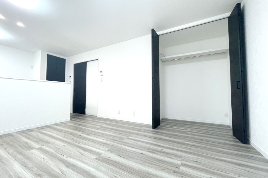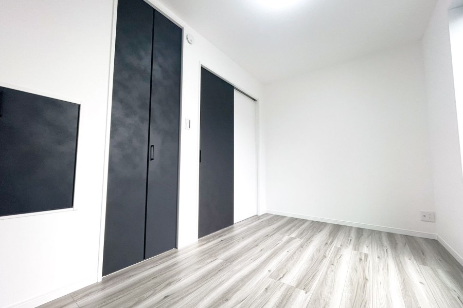 部屋全体はホワイトを基調にし、建具はブラックを選定しております。全体的に統一されたデザインになっており、シンプルだからこそ飽きないデザインになっております。