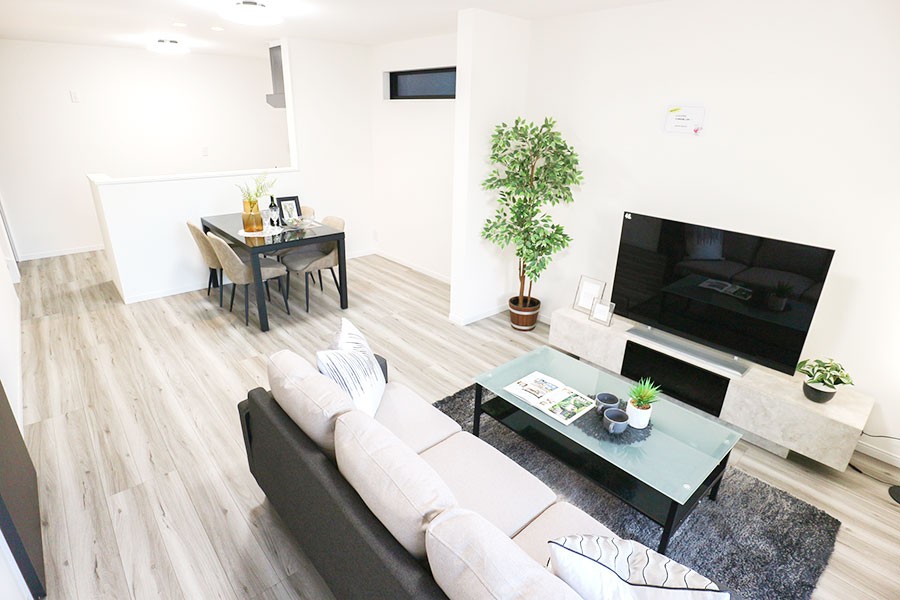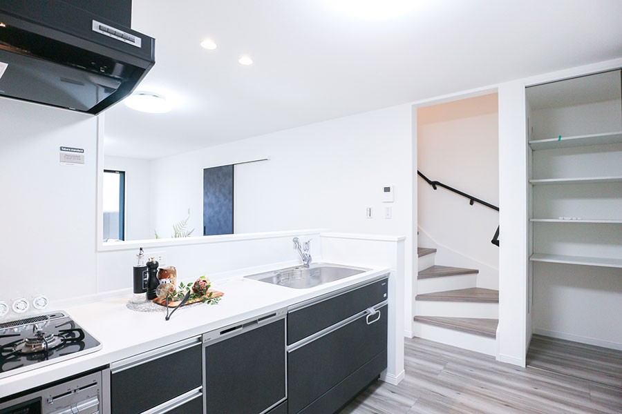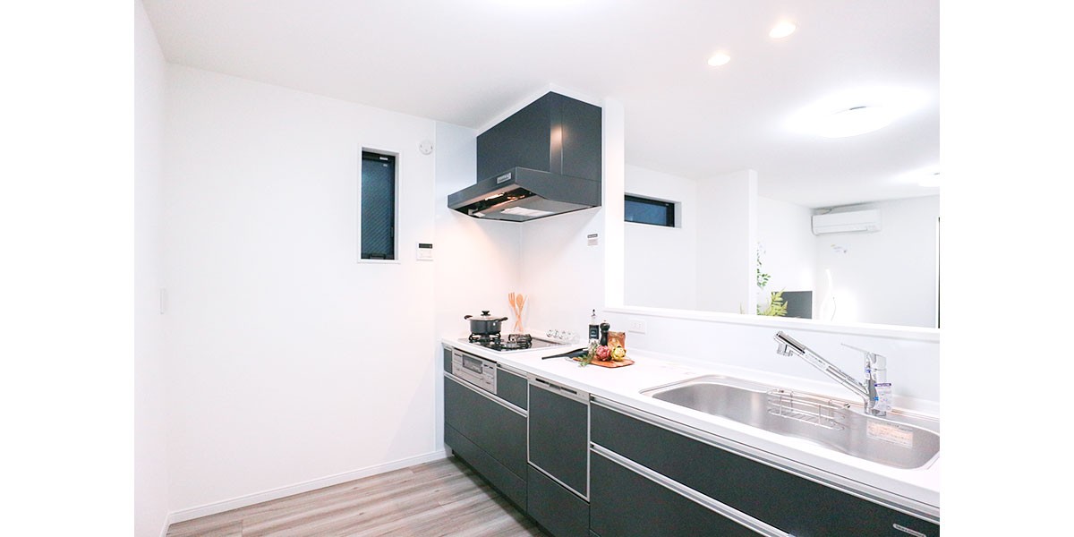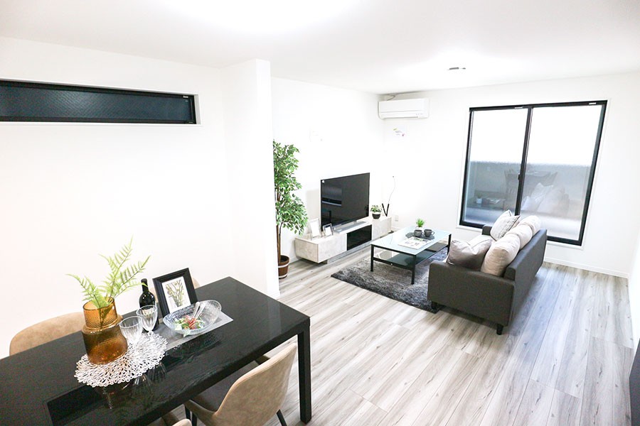 部屋残体は白を基調とし、建具は白、床材はグレー色を選んでおり、落ち着いた空間ですが、住む人によってはホテルライクな色合いへと変化するようになっています。