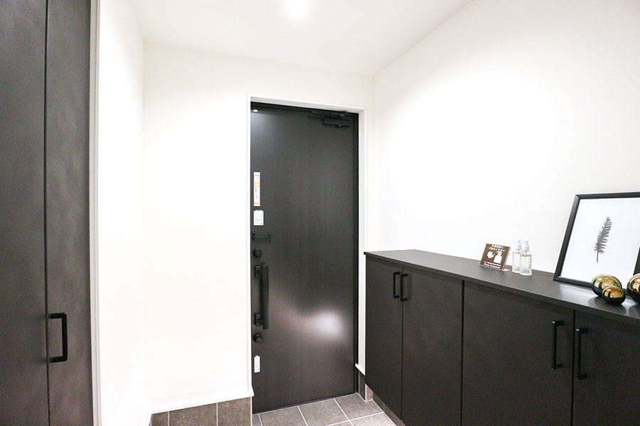 玄関に下駄箱を設置し、プラスでSIC(シューズインクローゼット)も設置しております。下駄箱には靴、SICにはゴルフ用品やスポーツ用品を収納するだけのスペースがあり、たくさんの物を収納できます。