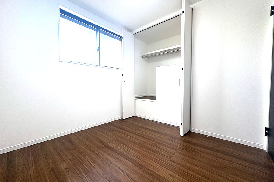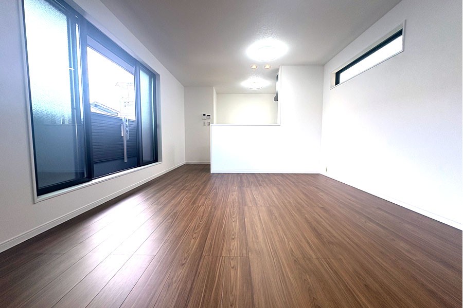 室内はホワイトを基調に、全体が明るく感じられる空間にしました。 フローリングは木目と深みのあるブラウンを取り入れ、ナチュラルでありながらも落ち着きのある雰囲気に仕上げました。