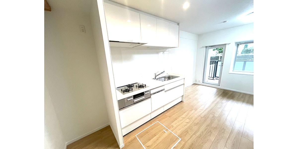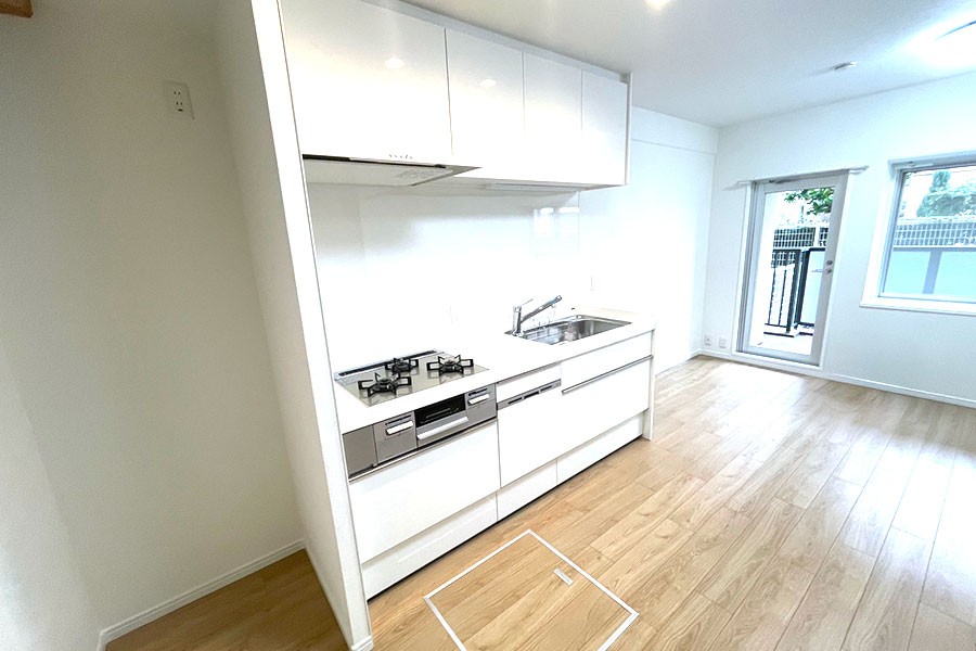 (新調)システムキッチン、ユニットバス、トイレ、洗面化粧台、給湯器、室内洗濯パン、ドアホン、ALL建具、下駄箱(張替)フローリング(全室・LDK・廊下)、クッションフロア(洗面室・トイレ)、クロス壁・天井(LDK・洋室2部屋・玄関・廊下・トイレ・洗面所・WIC)(その他)玄関土間養生、網戸張替、カーテンレール取付、ハウスクリーニング |